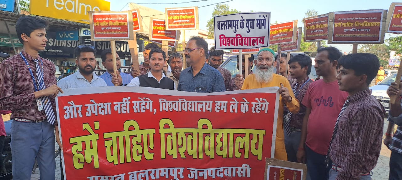 बलरामपुर :विश्वविद्यालय निर्माण की मांग को लेकर पैदल मार्च निकला