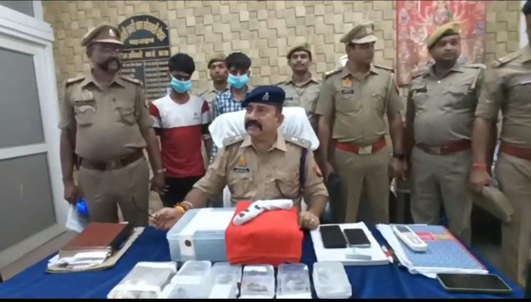 अपर पुलिस अधीक्षक नगर कुंवर ज्ञानंजय सिंह ने कोतवाली देहात में सोमवार को घरों में होने वाली चोरियों का खुलासा किया। एएसपी ने बताया कि कोतवाल शमशेर बहादुर सिंह, चौकी इंचार्ज महेंद्र कुमार सिंह, चौकी इंचार्ज रायपुर राजा सूरज कुमार, एसआई अनिल यादव की टीम ने रंजीतपुर गांव के निकट से दो चोरों को गिरफ्तार किया। इनके पास से चोरी के सोने-चांदी के जेवरात, कई चांदी के सिक्के, एक मोबाइल, 1590 रुपये नकद बरामद किए गए हैं। एएसपी ने बताया कि आरोपितों के पास से एक तमंचा और एक कारतूस भी बरामद हुआ है। दोनों की पहचान रवि कश्यप उर्फ नौरंगी निवासी ताजपुर गोबरहा रानीपुर और गौतम मिश्रा निवासी नलकूप कालोनी कोतवाली देहात के रूप में हुई हैं। दोनों पर कई थानों में चोरी समेत अन्य धाराओं में मुकदमा दर्ज है।
