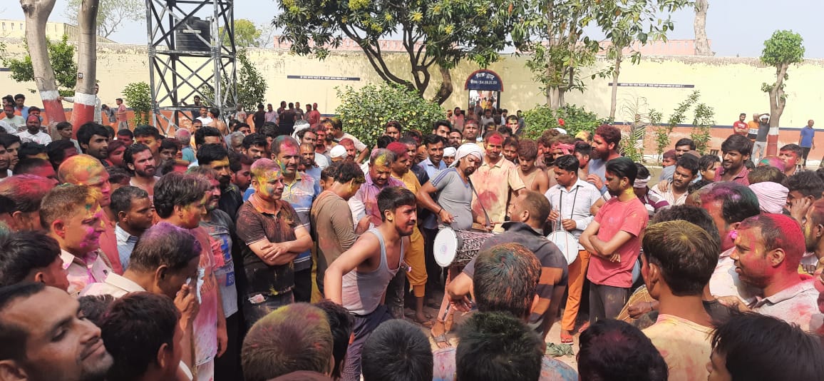 बुलंदशहर(हि.स.)। जिला कारागार में कैदियों ने भी होली का त्योहार बड़े धूमधाम से मनाया गया। सभी बंदियों के साथ कारागार के कर्मचारी गाजे-बाजे के साथ होली के गीत गाते, नृत्य करते हुए होली के रंगों में सराबोर नजर आए।