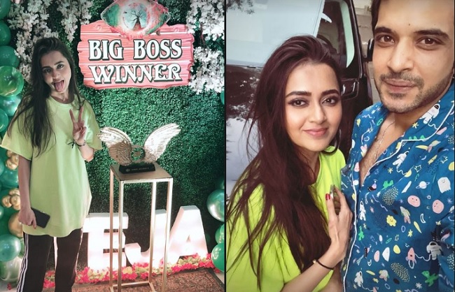 बिग बॉस सीजन 15 खत्म हो चुका है और शो की विनर बनी हैं तेजस्वी प्रकाश। तेजस्वी प्रकाश के विजेता बनने के बाद उनके तमाम चाहनेवाले उन्हें बधाई दे रहे हैं। वहीं बिग बॉस 15 के कंटस्टेंट करण कुंद्रा ने भी तेजस्वी प्रकाश को विजेता बनने की ख़ुशी में एक प्यारा सा सरप्राइज दिया है। करण कुंद्रा ने बिग बॉस खत्म होने के अगले दिन तेजस्वी प्रकाश के घर में एक रूम को सजा कर उसमें बिग बॉस विनर लिखकर उनका स्वागत किया।यहां पर बिग बॉस की ट्रॉफी भी रखी थी। इस वीडियो में तेजस्वी के पिता भी नजर आ रहे हैं। तेजस्वी को करण का यह सरप्राइज काफी पसंद आया और उन्होंने इसका वीडियो अपनी इंस्टा स्टोरी पर फैंस के साथ साझा भी किया है। वहीं करण कुंद्रा ने अपनी इंस्टा स्टोरी पर तेजस्वी प्रकाश के साथ सेल्फी शेयर की है,जिसमें दोनों की जोड़ी बहुत प्यारी लग रही है।