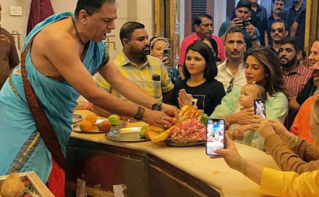 एक्ट्रेस प्रियंका चोपड़ा ने खुद अपने सोशल मीडिया हैंडल पर कुछ तस्वीरें शेयर की हैं। इन तस्वीरों में एक्ट्रेस अपनी बेटी मालती मैरी के साथ सिद्धिविनायक मंदिर में दर्शन करती नजर आईं। एक्ट्रेस प्रियंका चोपड़ा जोनास ने अपने सोशल मीडिया पर लेटेस्ट फोटोज शेयर कर फैंस को सिद्धिविनायक मंदिर की एक झलक दिखाई। उनकी इन फोटोज में फैंस को ‘सिद्धिविनायक’ मंदिर में गणपति बप्पा की मूर्ति नजर आई है।