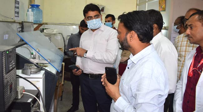 जिलाधिकारी ने पैथोलाजी वार्ड का निरीक्षण करते हुए प्रतिदिन कितने सैम्पल आ रहे हैं, की जानकारी ली तथा पैथोलाजी वार्ड में हो रही जांचों को कम्प्यूटर के माध्यम से स्वयं चेक किया। उन्होंने मौके पर लैब टेक्नीशियन की जानकारी ली। जिसमें लैब टेक्नीशियन हसमुइनुद्दीन की लम्बित पड़े कार्य और अनुपस्थित मिलने पर वेतन रोकेन का निर्देश दिया। उन्होंने प्रभारी चिकित्साधिकारी बेली पर नाराजगी व्यक्त करते हुए कहा कि आ रहे जांचों की मानीटरिंग ठीक से किया जाये। मुख्य चिकित्साधिकारी को प्लेट्लेट्स के लिए फ्रीजरों की संख्या और बढ़ाने के निर्देश दिये।
