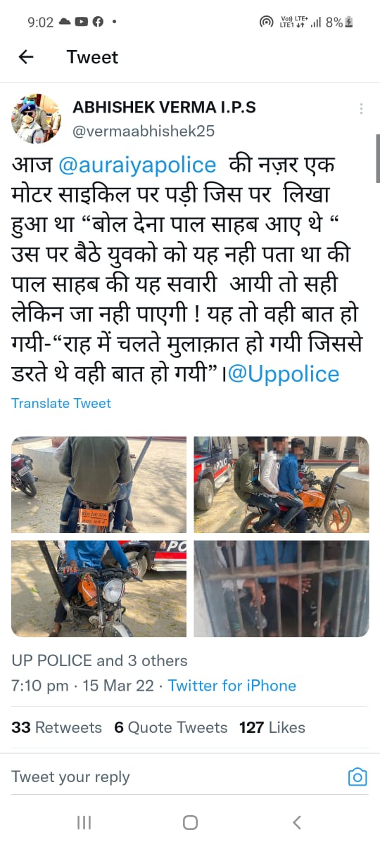 मामले में एसपी अभिषेक वर्मा ने भी पोस्ट किया। उन्होंने पोस्ट पर पूरी बात बताते हुए ये भी लिखा है कि ये तो वही बात हो गई, ‘राह में चलते मुलाकात गई, जिससे डरते थे वही बात हो गई।’ प्रभारी निरीक्षक नवीन कुमार सिंह ने बताया कि तीनों युवकों से पूछताछ की गई है।