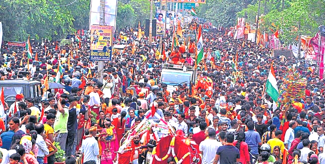 मुरादाबाद (हि.स.)। सावन मास के आखिरी सोमवार के मद्देनजर दिल्ली रोड व कांठ पर रविवार को कांवड़ियों का सैलाब उमड़ा। ब्रजघाट और हरिद्वार से डेढ़ लाख से अधिक कांवड़िये कावड़ भरकर मुरादाबाद पहुंचे। ब्रजघाट (गढ़ गंगा) और हरिद्वार से कांवड़ बेड़े आज तड़के से ही आना शुरू हो गए थे जिनके विशालकाय डीजे से गूंजते भक्ति संगीत पर लोग झूमने को मजबूर हो गए। दिल्ली रोड पर हर जत्थे के डीजे में एक दूसरे से अधिक आवाज से गूंजने की होड़ लगी रही। दिन बढ़ने के साथ ही बेड़ों का रेला भी बढ़ता गया। दोपहर तक यह चरम पर पहुंच गया। ऐसा लगने लगा कि मानो पूरा शहर शिवभक्ति रूपी सागर में समा गया हो। वहीं हरिद्वार से भी शिवभक्त कांवड़ लेकर आए।