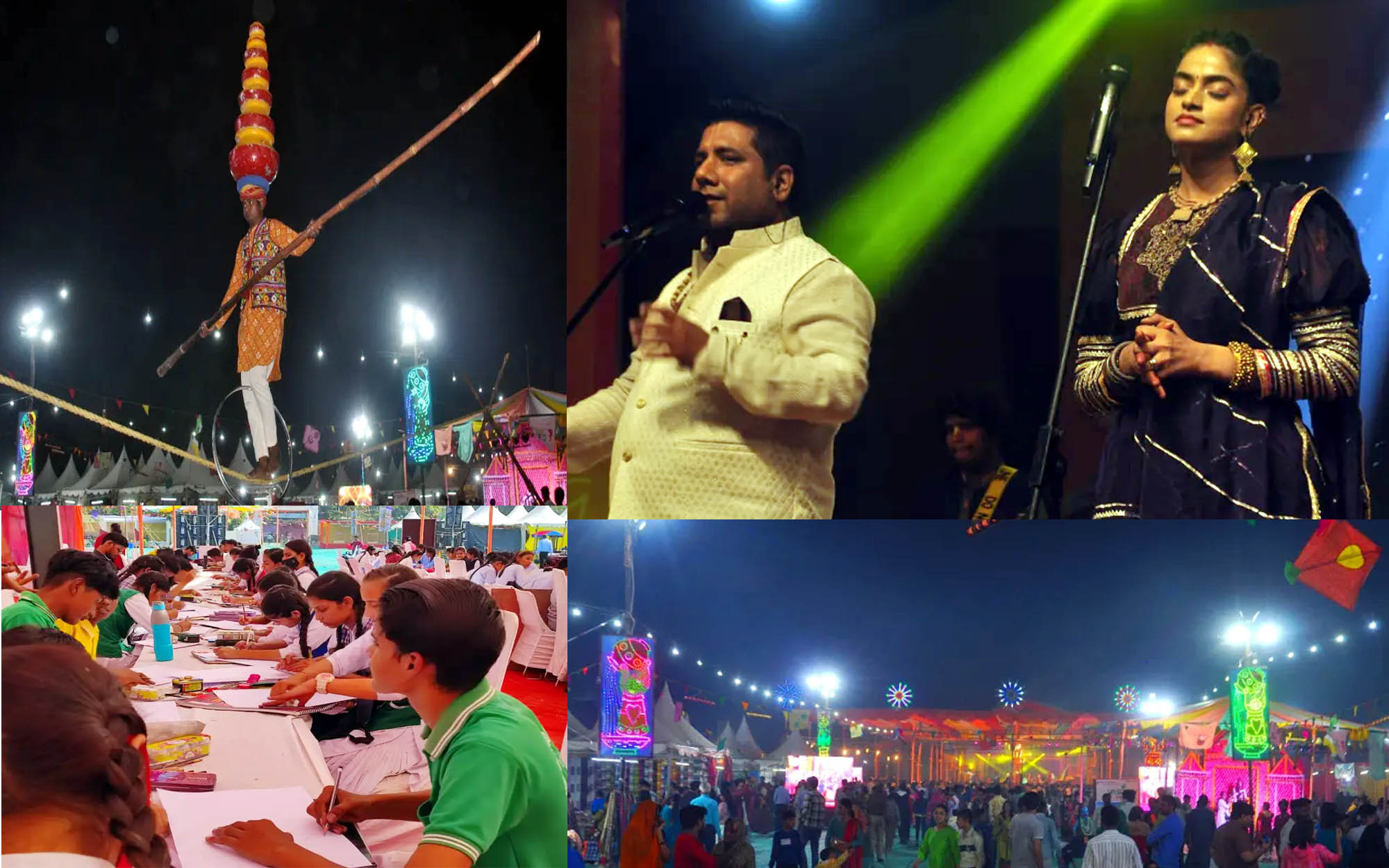 होली गीत प्रसिद्ध लोक कलाकार सीमा मोरवाल और ग्रुप ने प्रस्तुत किए। स्थानीय लोक कलाकारों की प्रस्तुतियों के बाद माधवास ग्रुप का नंबर आया है। माधव आज ग्रुप में अपने सुपरहिट गीतों “आली मोहे लागे वृंदावन नीको” और “नंद भवन में उड़ रही धूल” सुना कर दर्शकों को मंत्रमुग्ध कर दिया। हरे रामा हरे कृष्णा के पारंपरिक भजन को भी उन्होंने नए अंदाज में सुनाया।