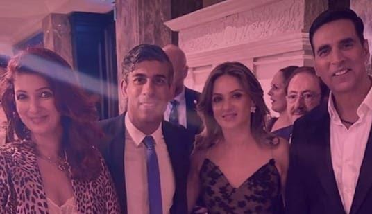 वीडियो में ट्विंकल खन्ना, ऋषि सुनक और अक्षय कुमार ने पोज दिए हैं। ट्विंकल ने वीडियो के कैप्शन में लिखा, “मुझे हील्स पहनना और डांस करना पसंद नहीं है, लेकिन आज की रात पैर की उंगलियों पर चोट लगी थी। सुधा मूर्ति मेरी हीरो हैं, लेकिन उनके दामाद प्रधानमंत्री ऋषि सुनक से मिलना बहुत अच्छा रहा।”