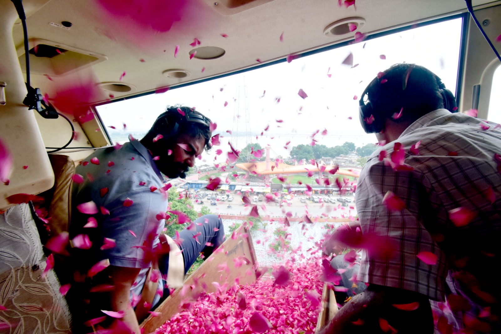 श्रद्धालुओं पर पुष्प वर्षा के लिए हेलीकॉप्टर ने राम कथा पार्क से उड़ान भरी। मंडलायुक्त गौरव दयाल, आईजी अयोध्या प्रवीण कुमार, जिलाधिकारी नीतीश कुमार और वरिष्ठ पुलिस अधीक्षक राज करन नैय्यर इस पर सवार हुए। हेलीकॉप्टर से पुष्प वर्षा देख शिवभक्त भाव-विभोर हो गये। इस दौरान हर-हर महादेव, ओम् नम: शिवाय और हर-हर, बम-बम के जयकारों से अयोध्या गुंजायमान हो उठी।
