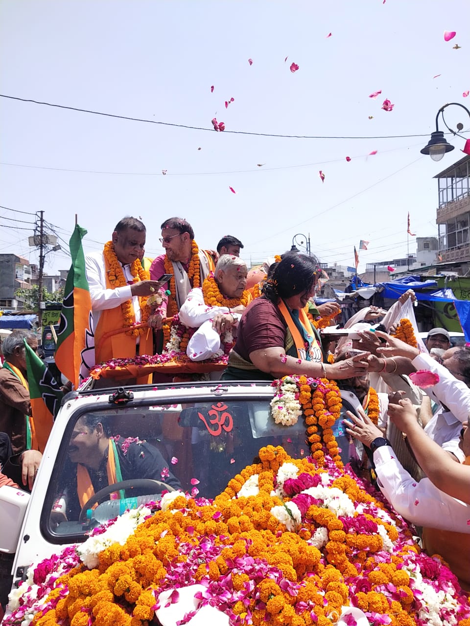 जय श्रीराम के नारों के साथ बजरिया स्थित गुरुद्वारे से शुरू हुए रोड शो का समर्थकों आम जनता व व्यापारियों ने पुष्प वर्षा कर चांदी का मुकुट पहनाकर शॉल ओढ़ाकर स्वागत किया। खुली गाड़ी में सवार उम्मीदवार लोगों का हाथ हिलाकर अभिवादन कर रही थीं। पूजा अर्चना के साथ गुरुद्वारा में मत्था टेक अरदास लगा शुरू हुआ रोड शो बजरिया गुरुद्वारे से घंटाघर, गंज,अग्रसेन बाजार चौपला,सिहानी गेट,दुर्गा भाभी चौक से होते शहीद पथ नवयुग मार्किट पर सम्पन्न हुआ।