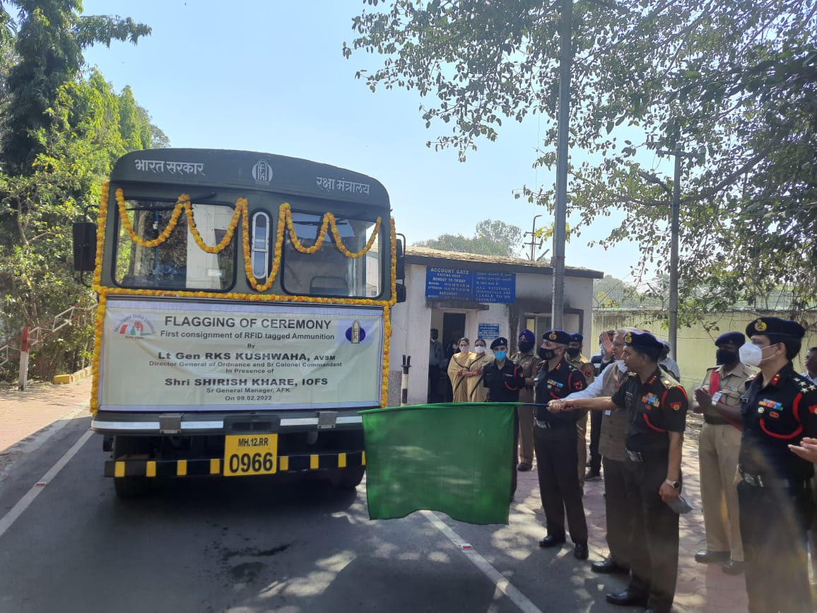 आरएफआईडी टैग गोला-बारूद की पहली खेप को आयुध सेवा के महानिदेशक ने हरी झंडी दिखाई। पहली खेप में 5.56 मिमी गोला-बारूद के तीन लॉट शामिल हैं। यह खेप एम्युनिशन फैक्ट्री खड़की (पुणे) से सेंट्रल एम्युनिशन (सीएडी) पुलगांव भेजी गई है।