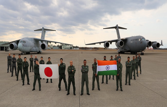 नई दिल्ली(हि.स.)। भारतीय वायु सेना ने जापान की एयर सेल्फ डिफेंस फोर्स (जेएएसडीएफ) के साथ एक ही समय दो-दो हवाई अभ्यास किये हैं। भारत-जापान की वायु सेनाओं के बीच संयुक्त अभ्यास शिन्यू मैत्री के साथ ही धर्म गार्जियन अभ्यास का भी जापान में गुरुवार को समापन हो गया। शिन्यू मैत्री अभ्यास जापान के कोमात्सु में और ‘धर्म गार्जियन’ अभ्यास शिगा प्रांत के कैंप इमाजू में किया गया। दोनों ही हवाई अभ्यासों में भारत के लड़ाकू विमानों ने अपनी युद्धक क्षमता का शानदार प्रदर्शन किया।