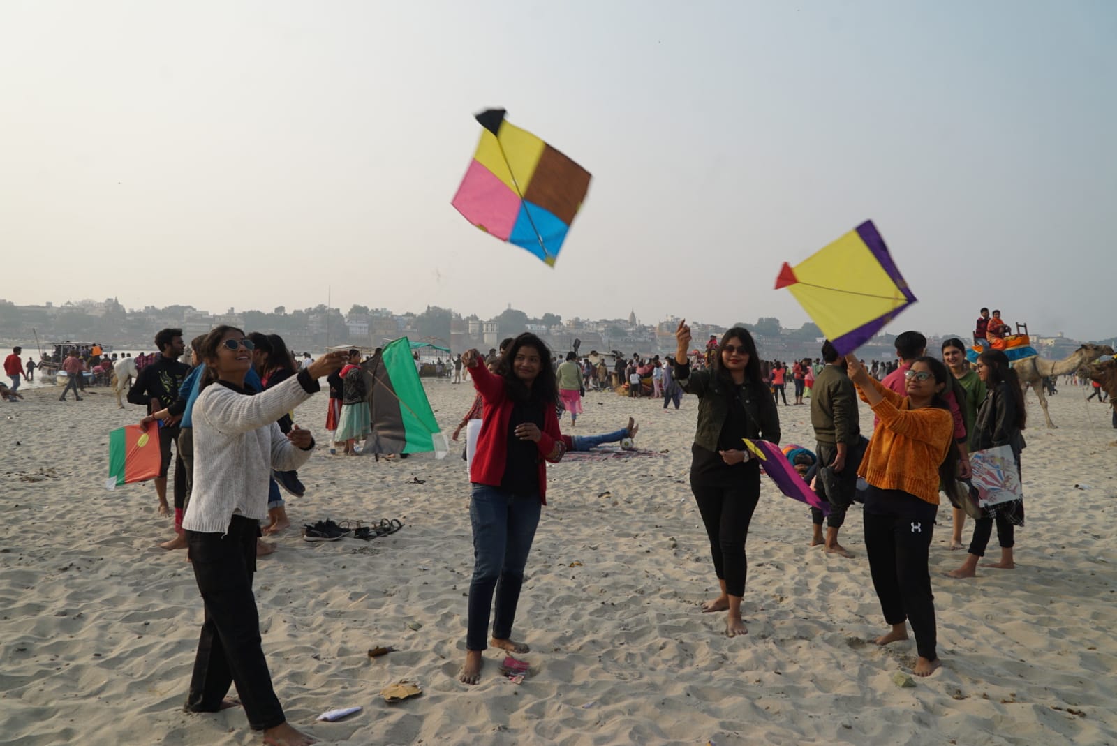 -लगातार दूसरे दिन घरों से लेकर गंगाघाटों और उस पार रेती में हो रही पतंगबाजी