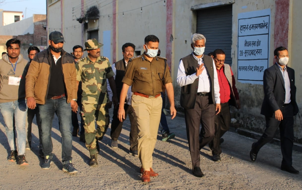 मुरादाबाद (हि.स.)। मंगलवार को जिलाधिकारी शैलेन्द्र कुमार सिंह एवं वरिष्ठ पुलिस अधीक्षक बबलू कुमार ने लाइनपार स्थित मंडी समिति स्थित मतगणना हाॅलों का निरीक्षण किया तथा सुरक्षा संबंधी आवश्यक जानकारी प्राप्त की। डीएम व एसएसपी सोमवार को भी मतगणना हॉलों का निरीक्षण करने पहुंचे थे।