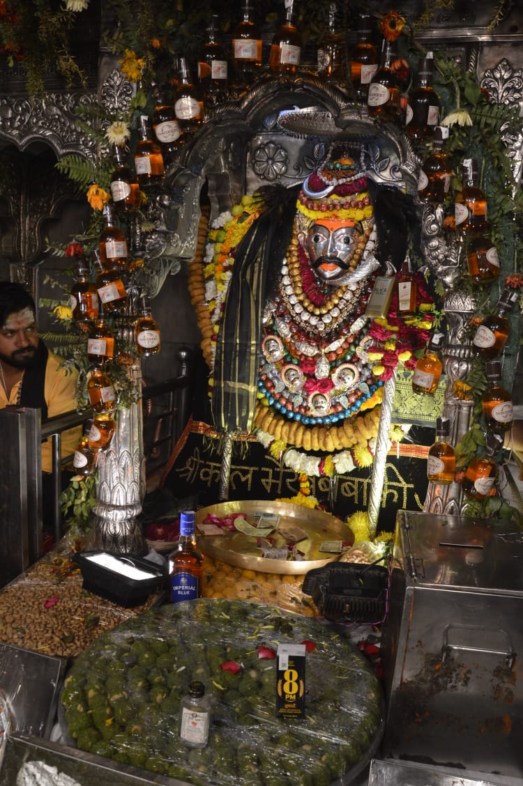 वाराणसी (हि.स.)। काशी के कोतवाल बाबा कालभैरव के विग्रह का खास श्रृंगार मंगलवार को मदिरा की बोतलों से किया गया। बाबा के दरबार में दर्शन पूजन के लिए और नयनाभिराम श्रृंगार देखने के लिए श्रद्धालुओं का सैलाब उमड़ पड़ा। अलसुबह से श्रद्धालु बाबा के दर्शन पूजन के लिए कतार बद्ध होते रहे।