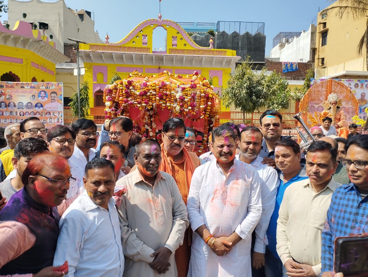 शोभायात्रा का शुभारंभ मंदिर में पंडित शिवदत्त शर्मा की पूजा अर्चना के साथ किया गया। अबीर, गुलाल व फूलों की होली खेलने के साथ शोभायात्रा निकाली गई। जिसमें श्री रामचंद्र जी के परिवार का दरबार, शिव-पार्वती, राधा-कृष्ण जी की झांकी, रामजन्मभूमि मंदिर निर्माण भवन की झांकी, भारतमाता की झांकी के साथ ही राधा-कृष्ण के नृत्य की झांकी लोगों के आकर्षण का केंद्र बनी रही।