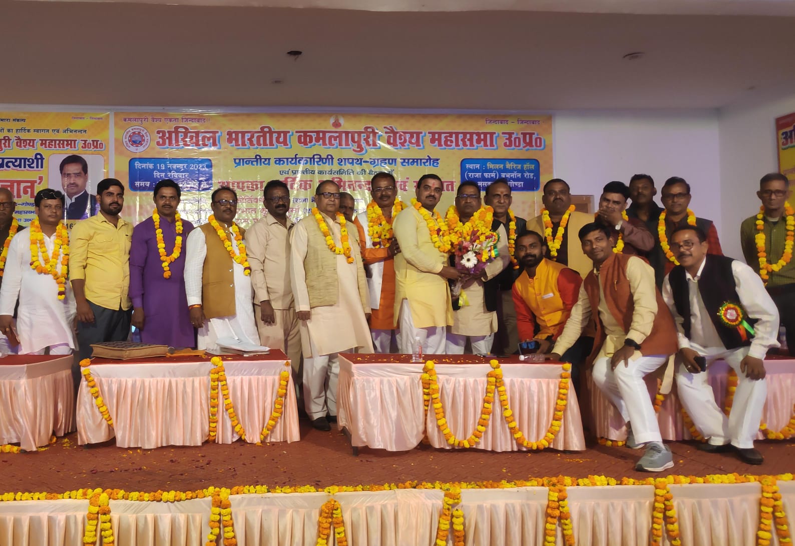 बलरामपुर।अखिल भारतीय कमलापुरी वैश्य महा सभा का प्रांतीय कार्यकारिणी का शपथ ग्रहण समारोह मिलन मैरिज हाल फार्म मसकनवा में सम्पन्न हुआ ।