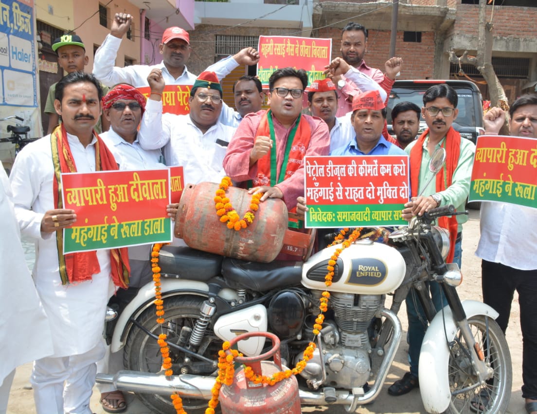 समाजवादी व्यापार सभा के तत्वाधान में प्रदेश महासचिव अभिमन्यु गुप्ता की अगुवाई में कमरतोड़ महंंगाई के विरुद्ध सत्याग्रह किया गया। अभिमन्यु गुप्ता ने कहा कि श्रद्धांजलि देकर हम वर्ष 2013 के मोदी व भाजपा नेताओं को ढूंढ रहे हैं जो तब 400 रुपये के गैस सिलिंडर व 70 रुपये के पेट्रोल के दामों में एक रुपये की वृद्धि होने पर कड़ा विरोध प्रकट करते थे। आज आठ वर्षों में सिलिंडर के दाम 400 से 1000 के पार हो गए और पेट्रोल ने भी शतक पार कर लिया जबकि अंतराष्ट्रीय बाजार में कच्चे तेल की कीमत 2013 की तुलना में आज कम है। इससे व्यापारी, किसान, महिलाएं सब महंगाई की वजह से खून के आंसू रोने को मजबूर हैं। अब सिलेंडर व दोपहिया वाहन आम जन की पहुंच से दूर हो गए हैं। इसलिए श्रद्धांजलि देकर महंगाई व मूल्यवृद्धि के विरुद्ध सत्याग्रह किया जा रहा है।