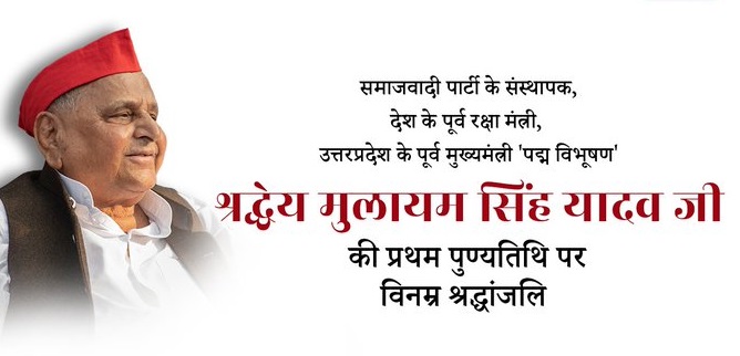 समाजवादी पार्टी के संस्थापक, देश के पूर्व रक्षा मंत्री, उत्तर प्रदेश के पूर्व मुख्यमंत्री ‘पद्म विभूषण’ मुलायम सिंह यादव की आज प्रथम पुण्यतिथि है।