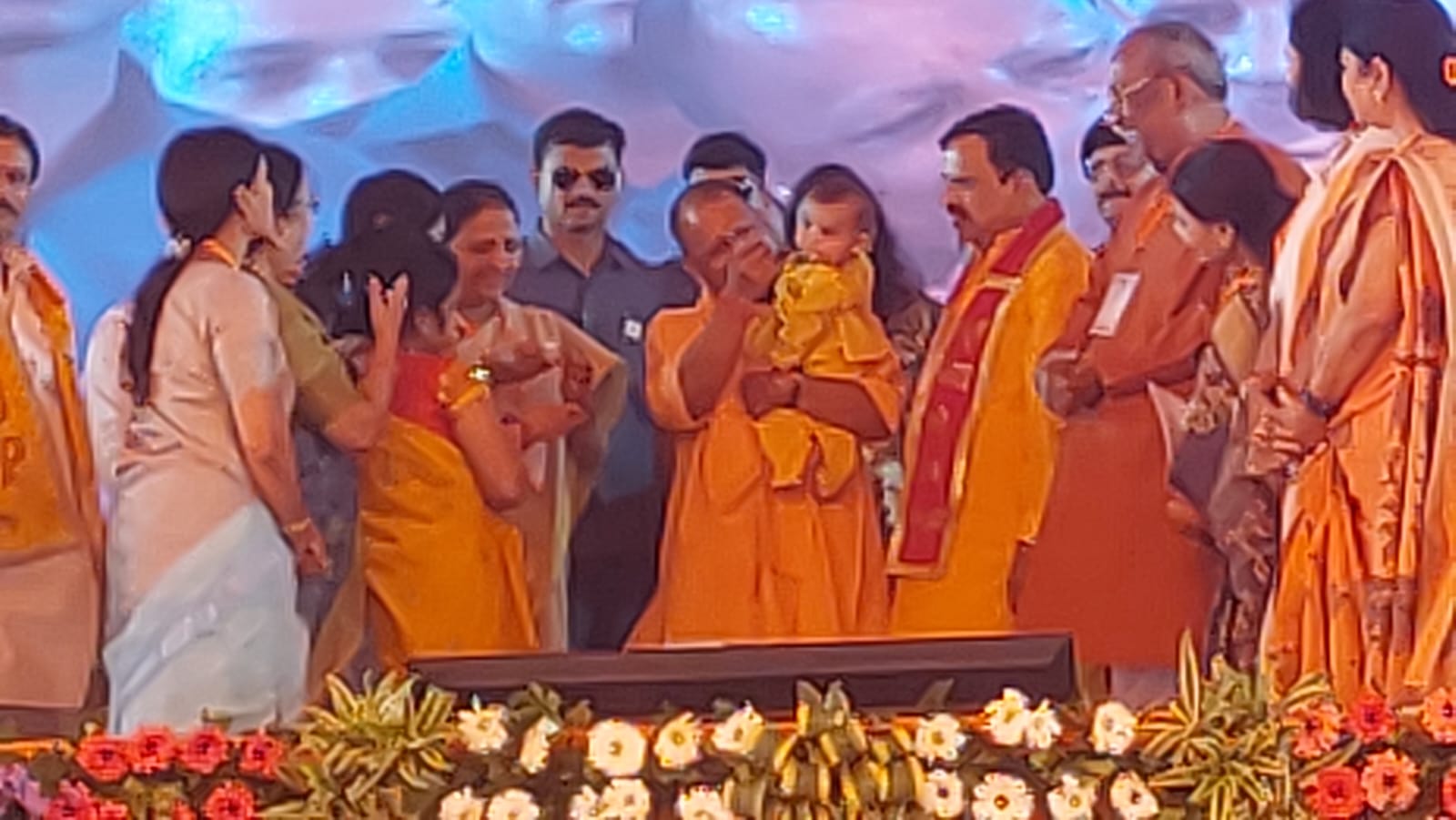 उत्तर प्रदेश के मुख्यमंत्री योगी आदित्यनाथ शनिवार को नारी शक्ति एवं नारी बंदन कार्यक्रम के तहत ककोर स्थित तिरंगा मैदान में पहुंचे। मंच पर पहुंचते ही उन्होंने एक छोटी सी बच्ची को खीर खिलाकर अन्नप्राशन कराया। उसे उपहार भी भेंट किया। उन्होंने नारी शक्ति नारी वंदन कार्यक्रम के तहत युवतियों को लैपटॉप एवं टैबलेट का वितरण भी किया। इसके उपरांत उन्होंने पात्र लाभार्थियों को चेकों का वितरण करने के साथ ही कुछ लोगों को आवास की चाबी भी उपलब्ध कराई।