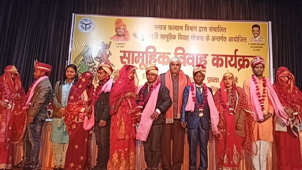 फिरोजाबाद (हि.स.)। मुख्यमंत्री सामूहिक विवाह योजना के अंतर्गत नगर निगम के पालीवाल ऑडिटोरियम में सोमवार को 31 जोड़ों का सामूहिक विवाह बड़े ही धूमधाम के साथ कराया गया। बैंड बाजों की धुन के बीच शादी समारोह में प्रशासनिक अधिकारियों व जनप्रतिनिधियों ने नवविवाहित जोड़ों को आशीर्वाद देकर उनके उज्जवल दाम्पत्य जीवन की कामना की।