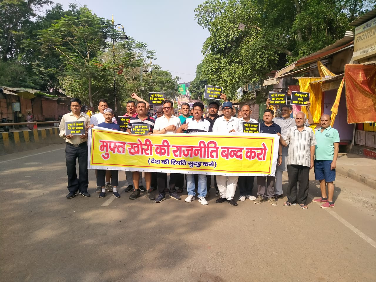 वाराणसी (हि.स.)। देश में मुफ्तखोरी की राजनीति बंद करने के लिए सामाजिक संस्था सुबह ए बनारस क्लब के सदस्यों ने सोमवार को मैदागिन चौराहे पर जमकर प्रदर्शन किया।