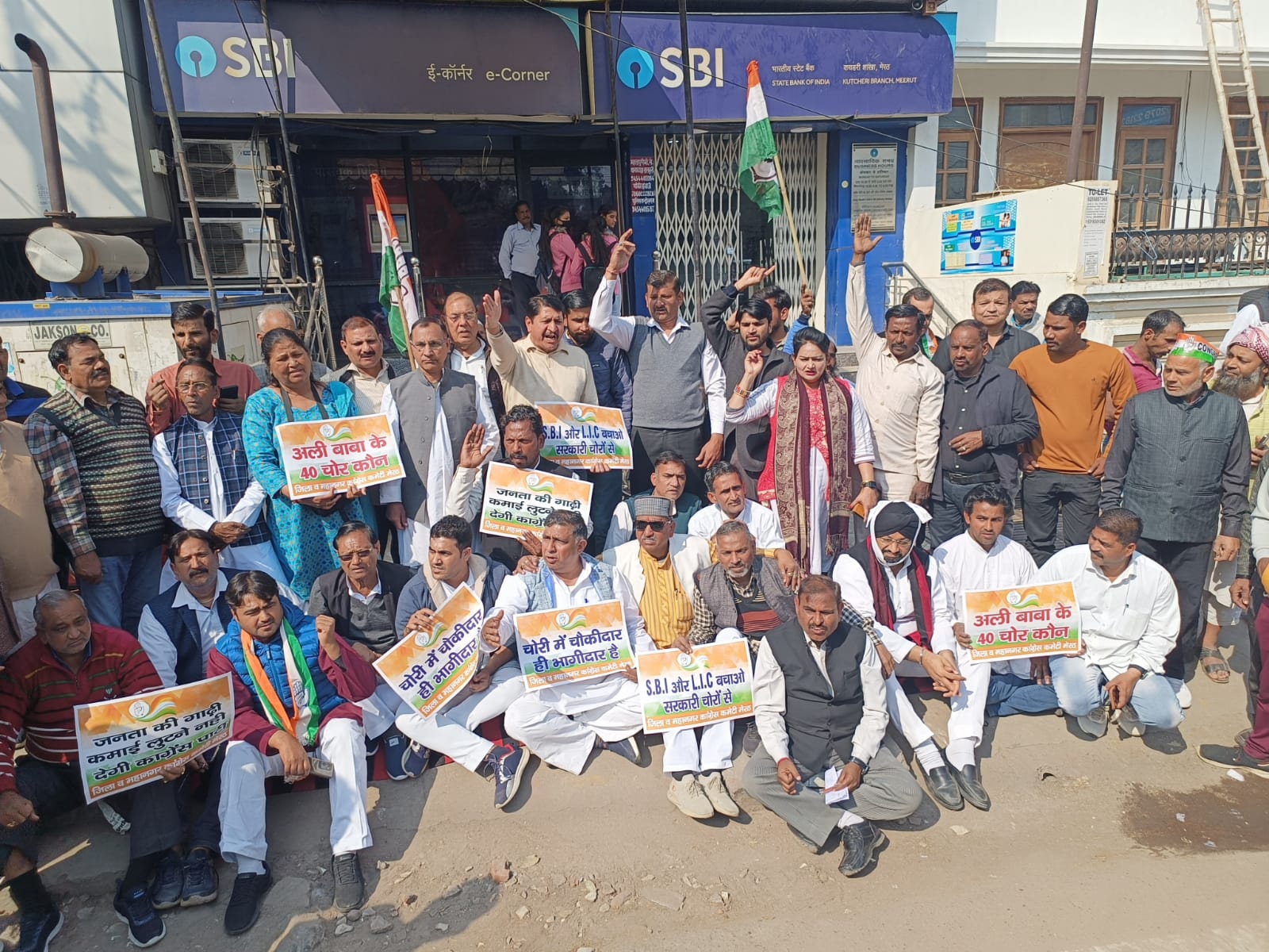 मेरठ़(हि.स.)। अदानी मामले को लेकर सोमवार को कांग्रेस कार्यकर्ताओं ने मेरठ शहर में पश्चिमी कचहरी मार्ग स्थित एसबीआई शाखा के बाहर धरना दिया। उन्होंने इस मामले की जेपीसी से जांच कराने की मांग करते हुए नोरबाजी की।