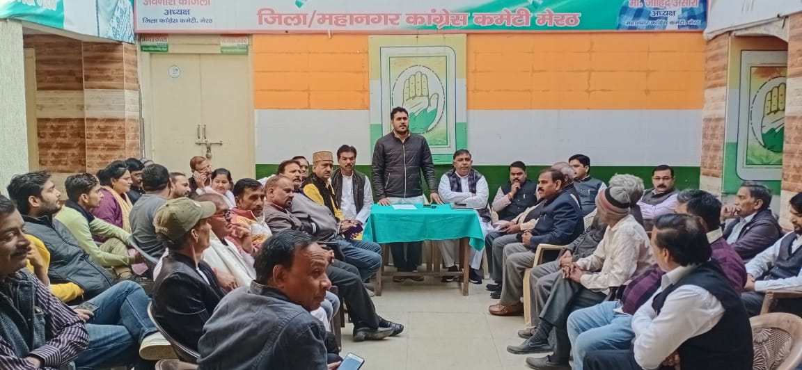 बुढ़ाना गेट स्थित कांग्रेस कार्यालय पर जिला और शहर कांग्रेस कमेटी की बैठक हुई। पार्टी प्रवक्ता हरिकिशन अंबेडकर ने बताया कि जिलाध्यक्ष अवनीश काजला की अध्यक्षता और शहर अध्यक्ष जाहिद अंसारी के संचालन में हुई बैठक में भारत जोड़ो यात्रा के आगमन पर चर्चा की गई। प्रांतीय अध्यक्ष नसीमुद्दीन सिद्दीकी के नेतृत्व में कांग्रेस की भारत जोड़ो यात्रा 12 दिसम्बर को मेरठ के शहीद स्मारक से शुरू होगी। इससे पहले 11 दिसम्बर की रात में हापुड़ से यह यात्रा मेरठ पहुंच जाएगी।शहीदों को नमन करते हुए यात्रा का शुभारंभ होगा। यह यात्रा शहीद स्मारक से आरम्भ होकर जली कोठी चौराहा, फैज-ए-आम कॉलेज, महताब सिनेमा, केसरगंज, रेलवे रोड चौराहा, ईदगाह चौराहा, मेट्रो प्लाजा, फुटबॉल चौक, ट्रांसपोर्ट नगर तिराहा, मलियाना फ़्लाईओवर होते हुए एनएच-58 बाईपास, पांचली खुर्द, जानी खुर्द, सिवालखास से होकर रवाना हो जाएगी।