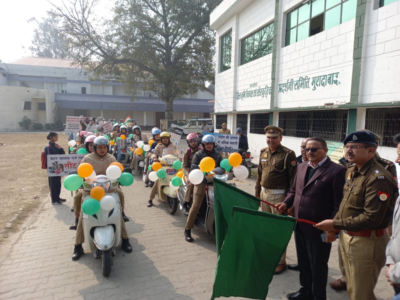 पंचायत भवन जिगर मंच से आरंभ हुई दोपहिया वाहन रैली को पुलिस अधीक्षक नगर अखिलेश भदौरिया एवं अपर जिलाधिकारी प्रशासन सुरेंद्र सिंह ने हरी झंडी दिखाकर रवाना किया। रैली फुब्बारा चौक, मझोली चौराहा, चौधरी चरण सिंह चौक होते हुए दिल्ली रोड स्थित सर्किट हाउस में समाप्त हुई। रैली द्वारा जन सामान्य को यातायात नियमों के प्रति जागरूक किया गया तथा यातायात नियमों का पालन करने के लिए प्रेरित किया गया।