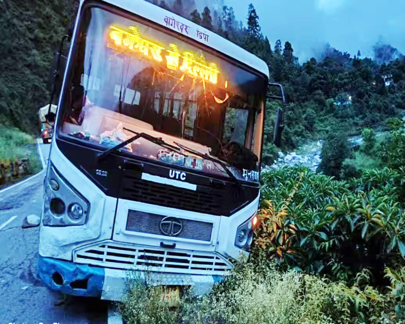 नैनीताल(हि.स.)। जनपद में बुधवार को एक बड़ी दुर्घटना दैव योग से टल गई। भवाली-अल्मोड़ा राजमार्ग पर गरमपानी के पास दोपाखी के पास उत्तराखंड परिवहन निगम की बस अनियंत्रित होकर शिप्रा नदी की ओर लटक गई। बताया गया है कि बागेश्वर डिपो की बस दिल्ली से बागेश्वर होते हुए मुन्स्यारी जा रही थी।