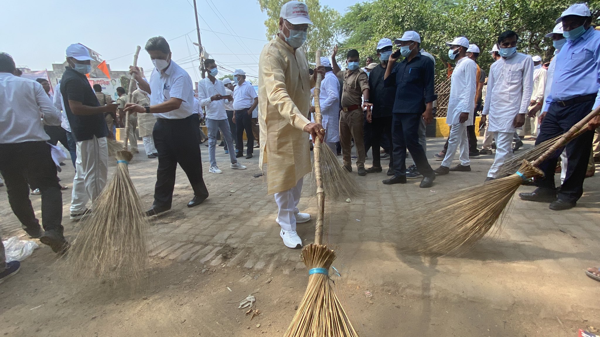 कारागार मंत्री धर्मवीर प्रजापति ने कहा कि भाजपा सरकार स्वच्छता पखवाड़ा और सेवा पखवाड़ा मना रही है। सोमवार को गांधी जयंती है प्रधानमंत्री ने लाल किले की प्राचीर से स्वच्छता का आह्वान किया। स्वच्छता अभियान पर भाजपा के करोड़ों कार्यकर्ता अपना योगदान दे रहे हैं। मैंने आज नगर की बस्तियों में जाकर अभियान चलाया। यहां के लोगों ने मुझे बहुत प्यार दिया। उनके साथ मिलकर मुझे भी स्वच्छता अभियान में भाग लेने का सौभाग्य मिला। वहीं, केंद्रीय राज्यमंत्री भानु प्रताप वर्मा ने कोंच नगर में झाड़ू लेकर स्वच्छता अभियान चलाया। उन्होंने कहा कि प्रधानमंत्री ने एक आह्वान किया और पूरा देश झाड़ू लेकर निकला है।