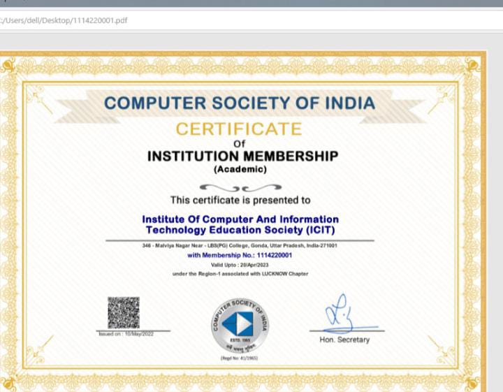 यूपी के गोण्डा के आईसीआईटी कम्प्यूटर सेंटर ने मारी लम्बी छलांग, कम्प्यूटर सोसायटी की मेम्बरशिप