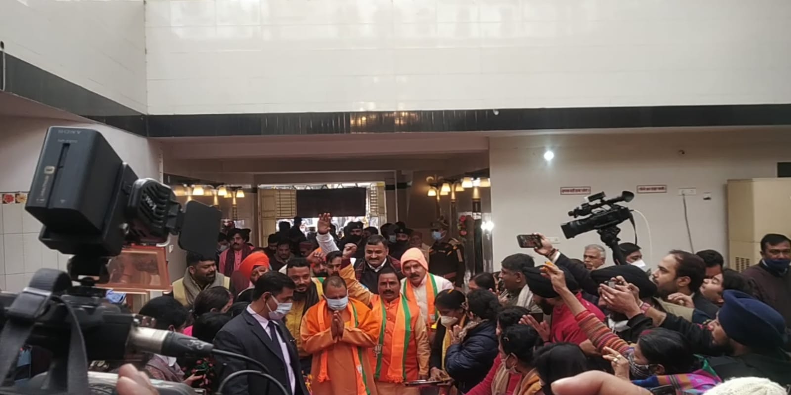 सीएम योगी जैसे ही श्रीश्री गोपाल मंदिर पहुंचे, पूरा मंदिर परिसर ‘जय श्रीराम’ के जयकारे से गूंज उठा। मंदिर प्रबंधन समिति की ओर से उनका अभिनन्दन हुआ। महिला श्रद्धालुओं ने ‘पुष्पवर्षा’ कर स्वागत किया और आरती उतारी। मुख्यमंत्री ने जैसे ही मंदिर में प्रवेश किया, उनकी नजर दो छोटी बच्चियों से पर गई और स्वाभाविक तौर पर उनका ‘बाल प्रेम’ उमड़ पड़ा। दिनेश आनंद-अलका आनंद की पुत्री ‘तारिणी’ तथा सागर मोदी-ईशा मोदी की बेटी ‘ऋषिका’ को खूब दुलारा। इस दौरान सबसे पहले सीएम योगी ने उनका नाम जाना। फिर पढ़ाई के बारे में पूछा और खूब पढ़ने-आगे बढ़ने को प्रेरित किया।