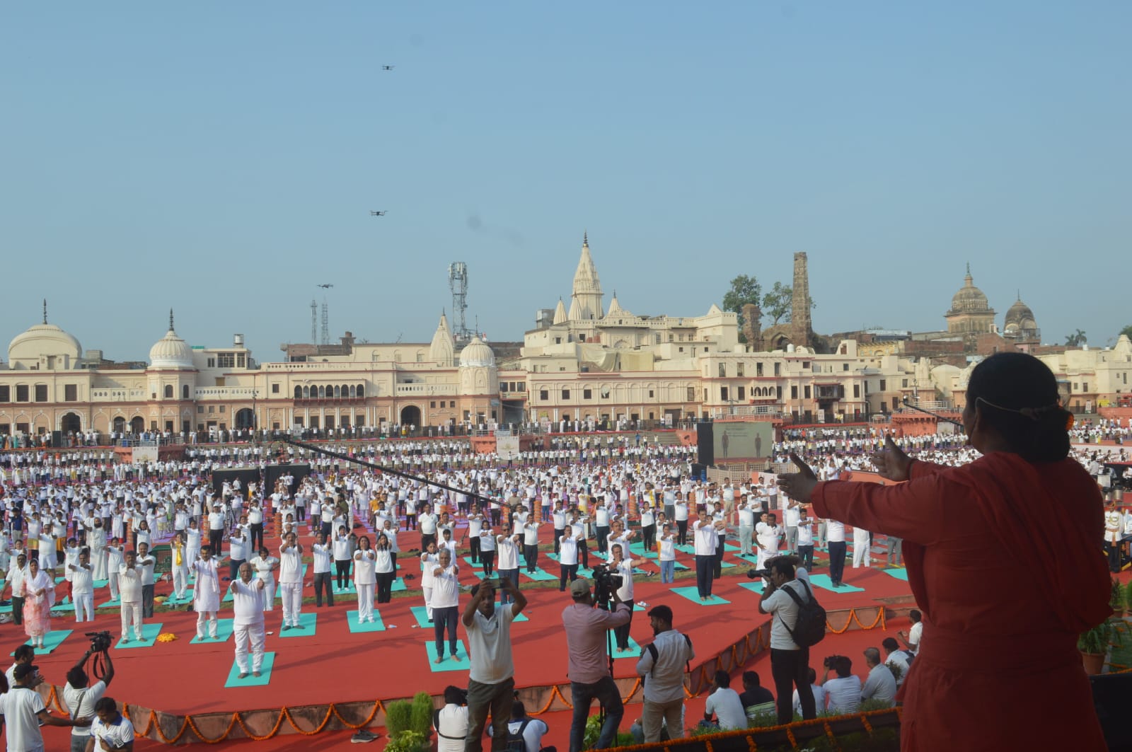 अयोध्या (हि.स.)। अंतरराष्ट्रीय योग दिवस पर मंगलवार को राम की पैड़ी पर पांच हजार से अधिक लोगों ने एक साथ योग किया। इस दौरान केंद्रीय मंत्री भूपेंद्र यादव, महापौर ऋषिकेश उपाध्याय, सांसद लल्लू सिंह और मंडल एवं जिले के सभी वरिष्ठ प्रशासनिक अधिकारी भी मौजूद रहे।