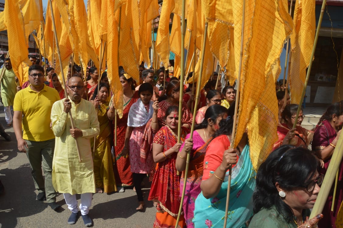 वाराणसी(हि.स.)। श्री श्याम मंडल की ओर से रंगभरी एकादशी पर शुक्रवार को भव्य निशान शोभायात्रा निकाली गई। रथयात्रा स्थित पंचमुखी हनुमान मंदिर से निशान शोभा यात्रा प्रारंभ हुई । इसके पहले फागुन महोत्सव के तहत संजय पुजारी ने निशान ध्वजा का पूजन अर्चन कर आरती उतारी। संस्था के अध्यक्ष दीपक बजाज और अन्य सदस्य ध्वज लेकर शोभायात्रा में शामिल हुए। पूरे राह शोभायात्रा में खाटू श्याम के भजनों पर श्रद्धालु नाचते गाते चल रहे थे। शोभायात्रा गुरूबाग होते हुए लक्सा स्थित श्याम मंदिर पहुंची। यहां प्रभु के चरणों में निशान अर्पित की गई। शोभायात्रा में श्री कृष्ण स्वरूप खाटू श्याम बाबा की अलौकिक प्रतिमा सजाई गई थी शोभयात्रा में गायक गणेश लोहिया बंटी ने भजनों की प्रस्तुति की। शोभायात्रा में आगे आगे बैंड बाजे की धुन पर श्याम नाम धुन बज रहा था। इसमें राजेश तुलस्यान, सुरेश तुलस्यान, प्रमोद बजाज, पवन कुमार अग्रवाल, प्रवीण , विजय खेमका, भगवती शर्मा आदि ने भागीदारी की।