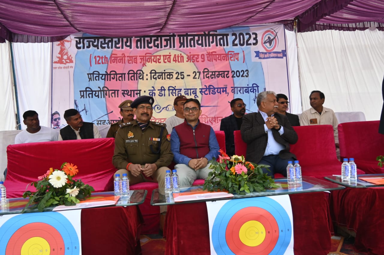 बाराबंकी।(हि सं)। तीन दिवसीय राज्य स्तरीय तीरंदाजी 12वीं मिनी सब जूनियर एवं चौथी अंडर 9 चैंपियनशिप का शुभारंभ के0 डी0 सिंह बाबू स्टेडियम बाराबंकी में हुआ। इस अवसर पर मुख्य अतिथि उत्तर प्रदेश तीरंदाजी संघ के प्रदेश अध्यक्ष अवनीश अवस्थी सलाहकार मुख्यमंत्री उत्तर प्रदेश एवं विशिष्ट अतिथि जिलाधिकारी सत्येन्द्र कुमार और पुलिस अधीक्षक दिनेश कुमार सिंह उपस्थित रहे।