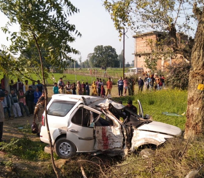 रायबरेली(हि. स.)।साइकिल सवार को बचाने के चक्कर तेज़ रफ़्तार सफ़ारी अनियंत्रित होकर पेड़ से टकरा गई।जिसमें तीन युवकों की मौके पर ही मौत हो गई और एक महिला घायल हो गई।घटना शुक्रवार दोपहर बाद की है।पुलिस ने शव को कब्जे में लेकर पोस्टमार्टम के लिए भेज दिया है।