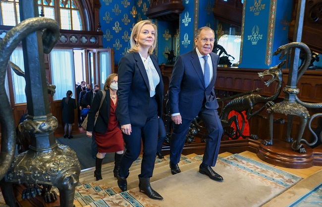 मॉस्को (हि.स.)। रूस-यूक्रेन संकट टालने के लिए कई देश प्रयास कर रहे हैं। फ्रांस के राष्ट्रपति मैक्रॉन के बाद ब्रिटेन की विदेश मंत्री लिज ट्रूस गुरुवार को मास्को पहुंच कर अपने समकक्ष सर्गेई लावरोव के साथ बैठक कर संकट पर चर्चा की।