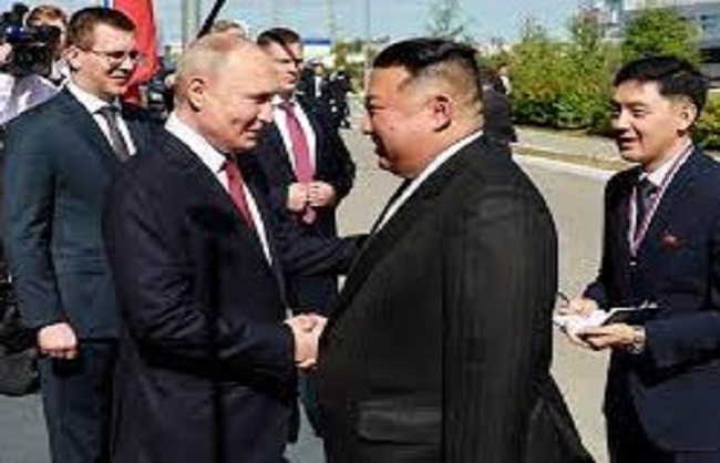 प्योंग्यांग/टोक्यो/मॉस्को (हि.स.)। उत्तर कोरिया के तानाशाह किम जोंग उन और रूस के राष्ट्रपति व्लादिमिर पुतिन की मुलाकात में दोनों देशों के रिश्तों में मजबूती का संकल्प व्यक्त किया गया है। इस मुलाकात के बीच ही उत्तर कोरिया ने एक बार फिर बैलिस्टिक मिसाइल दागकर सैन्य शक्ति प्रदर्शन किया है।