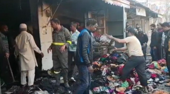 झांसी (हि.स.)। प्रेमनगर थाना क्षेत्र स्थित कस्तूरबा स्कूल के समीप स्थित कपड़े के शोरूम में शनिवार की सुबह भीषण आग लग गई। शोरूम अचानक आग की भयंकर लपटे निकलने लगी। पड़ोस में रहने वालों ने घटना की सूचना पुलिस व दमकल विभाग को दी। आनन-फानन में घटना की सूचना मिलते ही पुलिस व फायर बिग्रेड टीम मौके पर पहुंची और कड़ी मशक्कत के बाद आग पर काबू पाया गया। आगजनी की घटना में करीब 25 से 30 लाख रुपये का नुकसान बताया जा रहा है।
