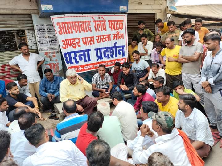 रेलवे ने आसफावाद के फाटक को स्थाई रूप से बंद किया जा रहा था जिससे फाटक के दोनों तरफ के क्षेत्रवासियों, ग्राहकों व राहगीरों को आने-जाने में लगभग 2 किलोमीटर का रास्ता तय करना पड़ सकता था। फाटक के बंद होने से आस पास के दुकानदारों पर भी इसका असर पड़ता। उनकी दुकानदारी प्रभावित होती और रोजगार की समस्या पैदा हो जाती। इस समस्या को देखते हुए आसफाबाद रेलवे क्रॉसिंग के दोनों ओर के दुकानदारों द्वारा अपने-अपने प्रतिष्ठान बंद करके धरना दिया जा रहा था। सूचना पर भाजपा विधायक सदर मनीष असीजा धरना स्थल पर पहुंचे। उन्होंने रेलवे एवं सेतु निगम के अधिकारियों को मौके पर बुला कर वार्ता की। इसके बाद इस क्षेत्र में 1 फुट का ओवरब्रिज बनाए जाने के अधिकारियों से आश्वासन दिया गया। इस कार्य का मौके पर ही तत्काल नारियल फोड़कर शुभारंभ कराया गया।