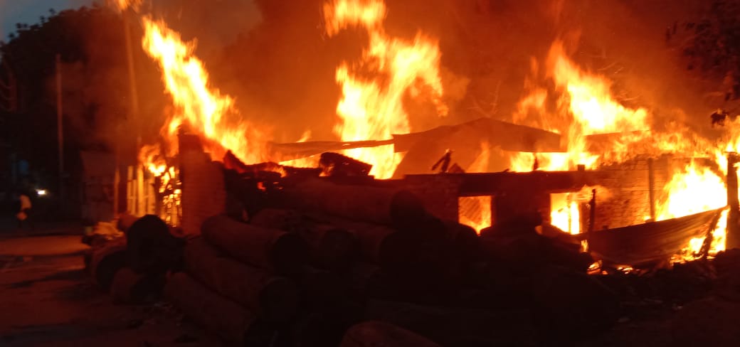 मंगलवार की सुबह लकड़ी गोदाम के ऊपर से गुजर रहे हाईटेशन लाइन का तार टूटकर लकड़ियों पर गिर गया। देखते ही देखते उसमें आग लग गई और अपना विकराल रुप लेते हुए तीन ध्रुव नारायण की दुकान उनके पड़ोसी कुशीनगर निवासी आशुतोष की लकड़ी दुकान और कपड़ा प्रेस करने वाले हीरालाल की दुकान इस आग में जलने लगी। मोहल्ले वालों से मिली जानकारी पर दमकल की चार गाड़िया मौके पर पहुंची और आग बुझाने का कार्य शुरु कर दिया। इस बीच दुकान स्वामी भी पहुंचे गये। आग को बुझाने में करीब तीन घंटे का समय लगा।