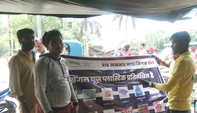 सीतापुर रोड स्थित नवीन गल्ला मंडी, पुरनिया फल मंडी के आसपास हाथों में बैनर लेकर पहुंचें नगर निगम कर्मियों ने पटरी दुकानदारों को सिंगल यूज प्लास्टिक प्रतिबंधित से संबंधित विषय बिन्दुओं को समझाया। पटरी दुकानदारों को बैनर पर बने चित्रों के माध्यम से प्लास्टिक से होने वाले नुकसान की जानकारी दी। सुबह से अपराह्न तक चले अभियान में स्टॉल भी लगाया गया।