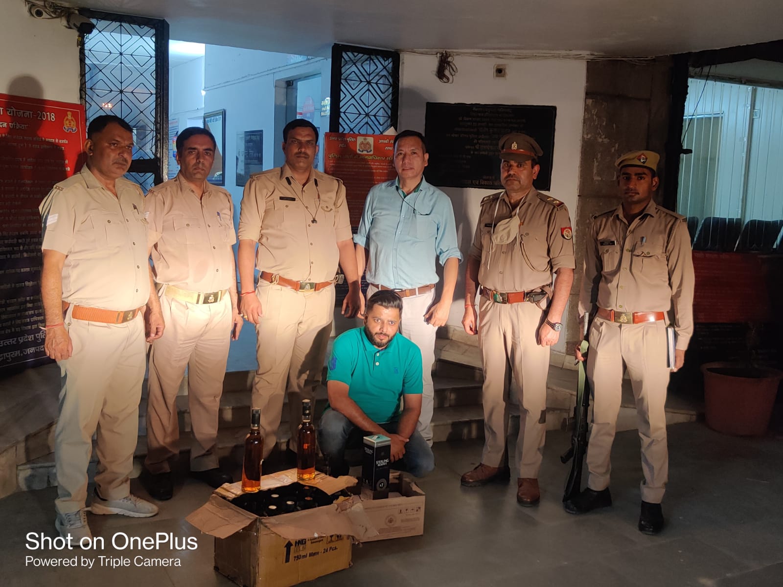 जिला आबकारी अधिकारी राकेश कुमार ने बताया कि अवैध शराब की बिक्री पर पूर्णतः अंकुश लगाने के लिए विशेष प्रवर्तन अभियान चलाया जा रहा है। इसी क्रम में गुरुवार को टीएस ह्यांकी आबकारी निरीक्षक सेक्टर–2, स्टाॅफ एवं इंदिरापुरम पुलिस की संयुक्त कार्रवाई में विंडसर मार्केट के पास एसपीएस चौराहे से एक शराब तस्कर अमन मेहरा निवासी 193, एलआईजी फ्लैट्स पश्चिम पुरी, थाना मादीपुर को हुंडई कार में छिपाकर लाखों रुपये की विदेशी शराब के साथ गिरफ्तार किया है। उसके कब्जे से 04 बोतल विदेशी मदिरा स्टर्लिंग रिजर्व (फॉर सेल इन दिल्ली) एवं अवैध 28 बोतल बिना रेपर, मार्का की विदेशी शराब बरामद हुई है। उन्होंने बताया कि अभियुक्त के विरुद्ध थाना इंदिरापुरम में आबकारी अधिनियम की धाराओं में अभियोग पंजीकृत कर जेल भेजा गया।