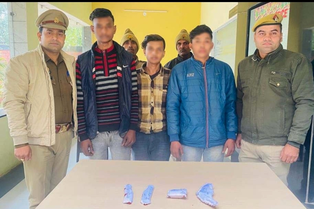 पुलिस अधीक्षक नगर अखिलेश भदौरिया पुलिस क्षेत्राधिकारी सिविल लाइन डॉ. अनूप कुमार सिंह ने बताया कि थाना मझोला पुलिस ने रविवार को लूट की योजना बना रहे आरोपित अनुराग उर्फ पोपू पुत्र भूरे बाल्मीकि निवासी मोहल्ला लक्ष्मनपुरी चिड़िया टोला थाना मझोला मुरादाबाद, गोलू उर्फ शिवम पुत्र भूकन सैनी निवासी मोहल्ला लक्ष्मनपुरी चिड़िया टोला थाना मझोला मुरादाबाद व लक्की उर्फ रक्षित भटनागर पुत्र विपिन भटनागर निवासी मोहल्ला गायत्री नगर थाना मझोला मुरादाबाद को गागन वाली मैनाठेर की पुलिया के पास से गिरफ्तार कर लिया। सीओ सिविल लाइन ने आगे बताया कि गिरफ्तार आरोपितों के पास से एक अवैध तमंचा 315 बोर व दो कारतूस जिन्दा 315 बोर, दो अवैध चाकू व 590/- रुपये आदि बरामद हुए।