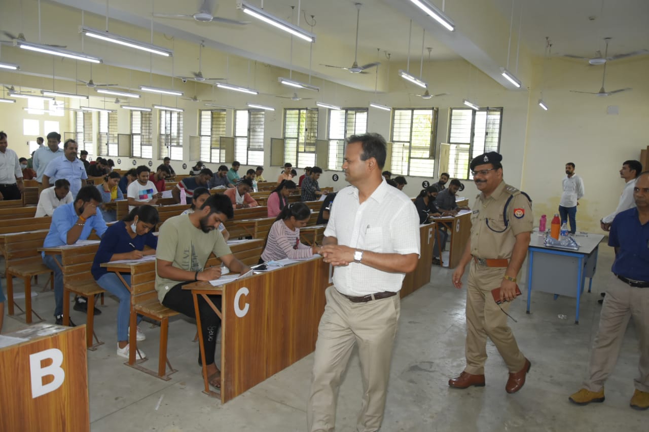 झांसी (हि. स.)। नगर के 36 केन्द्रों पर रविवार को लोक सेवा आयोग की प्रारंभिक परीक्षा आयोजित की गई। सुबह 9:30 पर प्रथम पाली की परीक्षा का जिलाधिकारी रविन्द्र कुमार एवं वरिष्ठ पुलिस अधीक्षक शिवहरी मीना द्वारा उत्तर प्रदेश लोक सेवा आयोग द्वारा आयोजित अधीनस्थ सेवा (प्रारंभिक) परीक्षा के परीक्षा केंद्र बुंदेलखंड विश्वविद्यालय, न्यू परीक्षा भवन एवं कुछ अन्य केंद्रों का औचक निरीक्षण किया गया। इस दौरान पूर्व योजना के अनुसार समस्त आवश्यक व्यवस्थाओं को देखा गया। उन्होंने परीक्षा को शांतिपूर्ण एवं शुचितापूर्ण ढंग से सम्पन्न कराए जाने के निर्देश दिए।