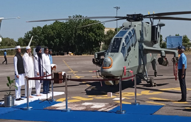 स्वदेशी हल्का अटैक हेलीकॉप्टर वायुसेना के बेड़े में शामिल करने के कार्यक्रम की शुरुआत रक्षामंत्री राजनाथ सिंह ने नए एलसीएच की सर्वधर्म पूजा करके की। इसके बाद हिंदुस्तान एयरोनॉटिक्स लिमिटेड के सीएमडी सीबी अनंतकृष्णनन ने एलसीएच की चाबी के गुच्छा रक्षामंत्री को सौंपा। राजनाथ सिंह ने एयर चीफ वीआर चौधरी को इसे सौंपने के साथ ही स्वदेशी हल्के अटैक हेलीकॉप्टर वायुसेना के बेड़े में शामिल करने की औपचारिकता पूरी की। इस मौके पर परंपरा के अनुसार एलसीएच को ‘वाटर कैनन सैल्यूट’ दिया गया। रक्षामंत्री ने 143 यूनिट के कमांडिंग ऑफिसर के साथ 15 मिनट उड़ान भरी और एलसीएच के सामने खड़े होकर फोटो भी खिंचवाई।