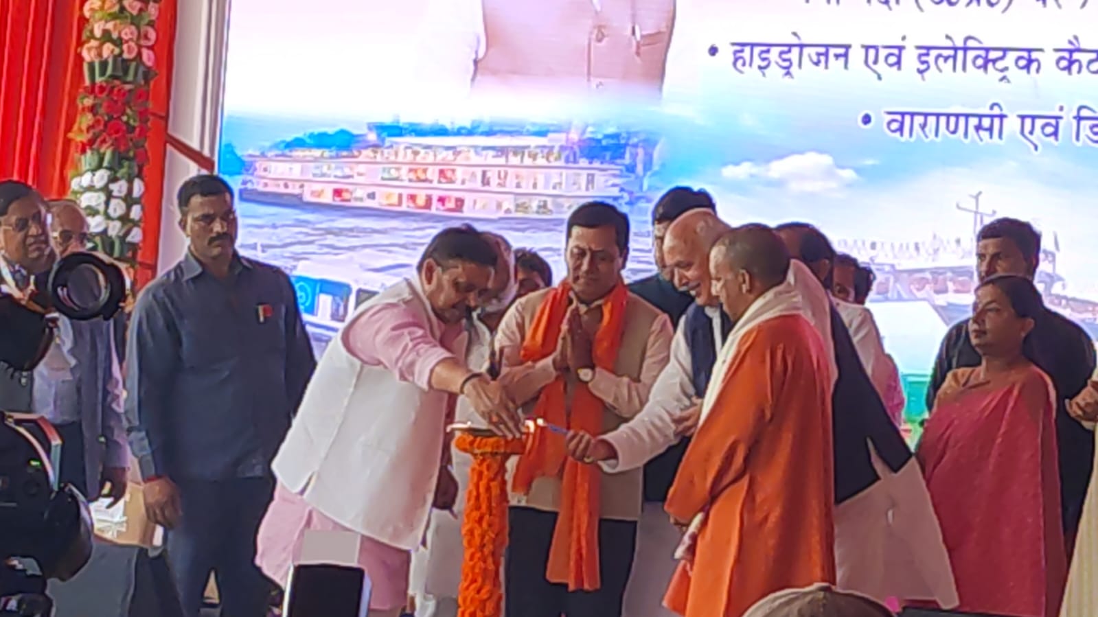 कार्यक्रम में प्रदेश के मुख्यमंत्री योगी आदित्यनाथ ने कहा कि प्रधानमंत्री मोदी की काशी और उत्तर प्रदेश को आत्मनिर्भर बनाने का संकल्प साकार हो रहा है। इनलैंड वॉटरवेज के जेट्टी के उद्घाटन से गतिविधियों में तेजी आएगी। मुख्यमंत्री ने इस मौके पर डिब्रूगढ़ के बीच क्रूज के टाइम टेबल का लोकार्पण और हाइड्रोजन एवं इलेक्ट्रिक कैटामेरन के लिए अनुबंध पत्र का हस्तांतरण करने के बाद कहा कि चार जिलों- वाराणसी, चंदौली, गाजीपुर एवं बलिया में जेट्टी के माध्यम से यहां की गतिवीधियों में तेजी लाई जा सके और इनलैंड वाटर-वे सुविधा का बेहतर लाभ दे सकें, इस उद्देश्य से आज इन जेट्टियों का लोकार्पण और शिलान्यास हुआ। उन्होंने कहा कि आत्मनिर्भर भारत की परिकल्पना को साकार करने में जल परिवहन से तेजी आएगी। वाराणसी, बलिया, गाजीपुर और चंदौली में बन रहे 15 जेट्टी से पर्यटन की संभावना बढ़ेंगी। उन्होंने कहा कि जल परिवहन से यातायात भी सुगम होगा। इससे ट्रेन और सड़कों पर यातायात का दबाब जहां कम होगा वहीं सड़कों पर प्रदूषण भी कम होगा। मुख्यमंत्री ने कहा कि उत्तर प्रदेश हमेशा इस बात के लिए तड़पता था कि राज्य चारों तरफ से जमीन से घिरा है। इसलिए हमारा उत्पाद जब तक बंदरगाहों तक पहुंचता था तबतक उसकी लागत ज्यादा हो जाती थी। इस कारण अंतरराष्ट्रीय बाजार की प्रतिस्पर्धा में हमारे उत्पाद टिक नहीं पाते थे। उत्तर प्रदेश से चीनी, सब्जी, फल, मिर्च आदि एक्सपोर्ट करने में बहुत समस्या होती थी।