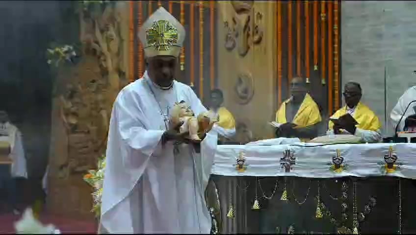 परम्परानुसार प्रभु ईसा मसीह के जन्म लेने के पूर्व रविवार रात 11.30 बजे से विशेष पूजा (मिस्सा बलिदान) की रस्म निभाई गई। महागिरजा के पल्ली पुरोहित फॉदर अगस्टीन सहित अन्य पुरोहितों ने मिस्सा पूजा की। इस दौरान मसीही समुदाय के लोग प्रभु की आराधना और विशेष महिमा गान करते रहे। महागिरजा सहित सभी गिरजाघरों में प्रभु के जन्म लेते ही एक साथ घंटे बजे। इसके बाद रात 12 बजे जैसे ही घड़ी की सुइयां एकाकार हुईं। बाल्य रूप में प्रतीक रूप से ईसा मसीह के जन्म लेने के बाद महागिरजा में वाराणसी धर्मप्रांत के बिशप डॉ. युजीन जोसेफ ने प्रभु यीशु के प्रतीकात्मक बाल रूप का मसीही समुदाय के लोगों को दर्शन कराया। इसके बाद चुनिंदा लोगों के साथ शोभायात्रा के बीच उन्होंने नवजात ईसा मसीह की प्रतिमा को गिरजाघर से स्थानान्तरित कर चरनी में स्थापित किया। चरनी के अभिषेक के बाद लोग प्रभु का दर्शन कर आह्लादित रहे। विशेष प्रार्थना सभा में भाग लेने के बाद मसीही एक दूसरे को मेरी क्रिसमस और हैप्पी क्रिसमस की बधाइयां देने लगे।