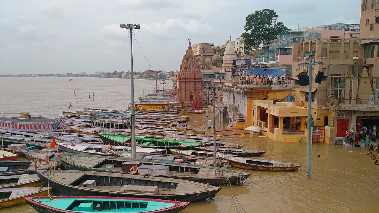 -दशाश्मेध घाट स्थित शीतला मंदिर के गर्भगृह में पहुंचा बाढ़ का पानी