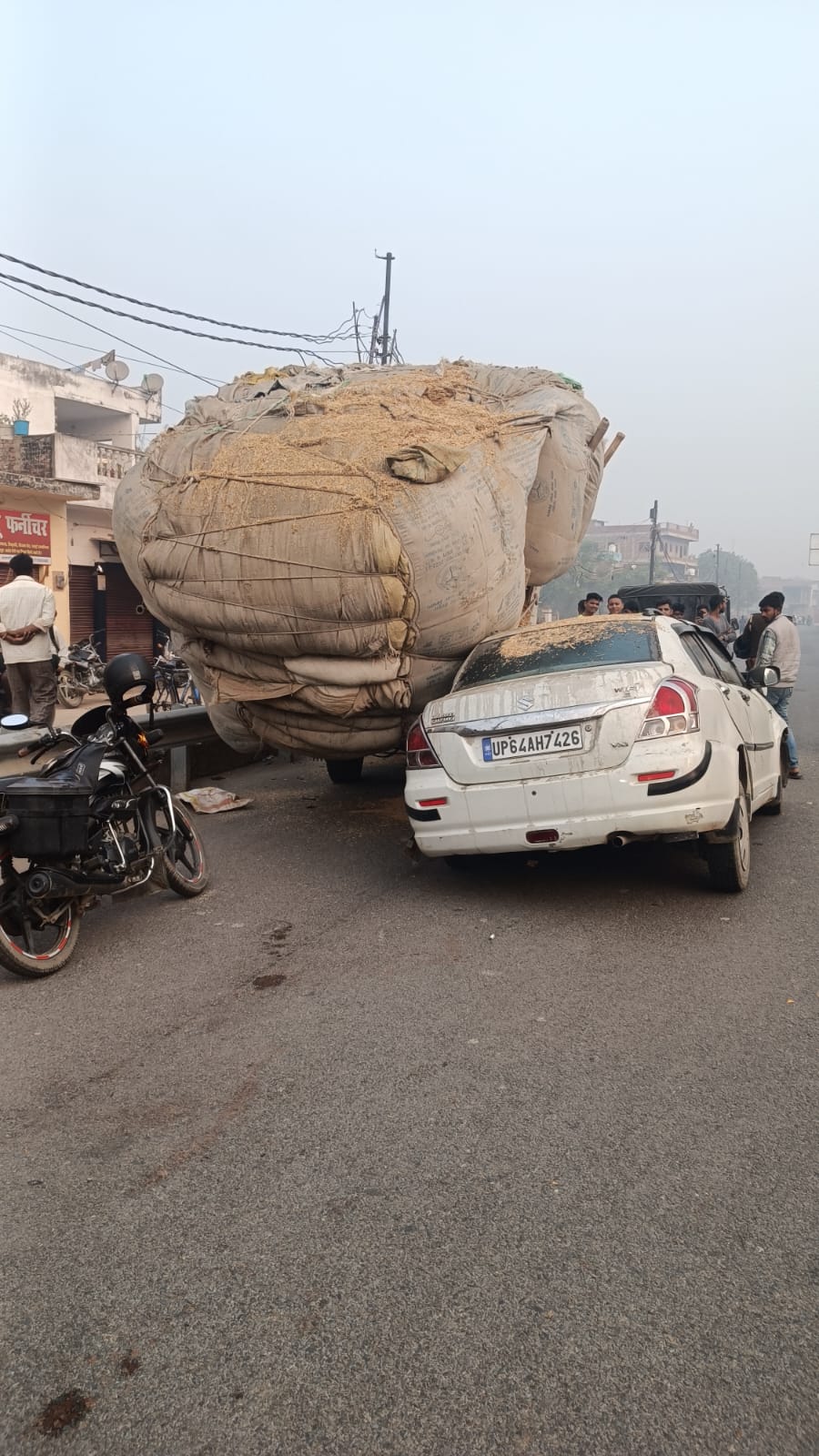 कैंट पुलिस के अनुसार कुम्हारपुरा के पास भोर में एक भूसा लदी पिकप बेयरिंग टूटने के कारण खड़ी थी। इसी दौरान सोनभद्र के राबर्ट्सगंज निवासी जावेद अहमद पुत्र सनव्वर अपने दो साथियों के साथ स्विफ्ट डिजायर गाड़ी से फुलवरिया ओवरब्रिज से गुजर रहा था। कुम्हारपुरा के पास तेज रफ्तार कार अनियंत्रित होकर खड़ी पिकप से टकरा गई। हादसे में तीनों गंभीर रूप से घायल हो गए। पुलिस ने तीनों को बीएचयू ट्रामा सेंटर में इलाज के लिए भिजवाया। जहां चिकित्सकों ने जावेद अहमद को मृत घोषित कर दिया। कैंट पुलिस ने दोनों वाहनों को अपने कब्जे में ले लिया। जिन्हें क्रेन द्वारा थाने पर पहुंचाने की कार्यवाही की जा रही है। मृतक और घायलों के परिजनों को घटना की सूचना दे दी गई है।