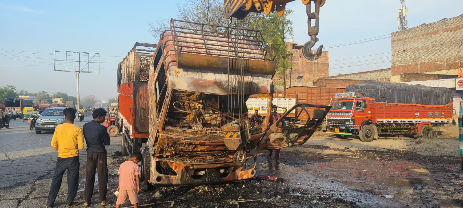 – झारखंड के दुमका से बस वाराणसी आ रही थी,ट्रक में भी लगी आग